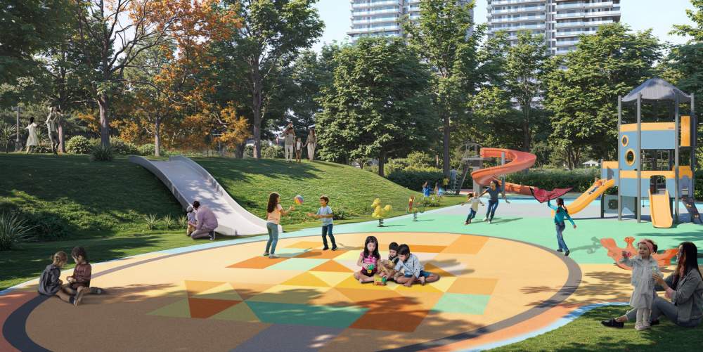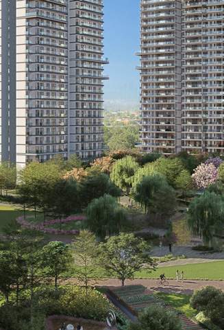 8-acre central greens framed by 7 towers