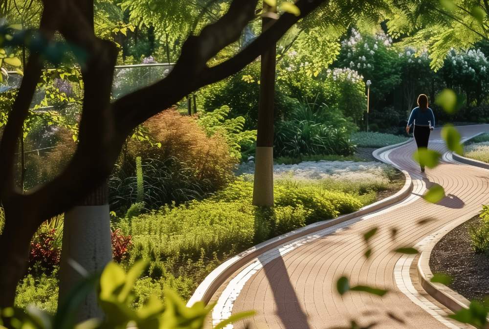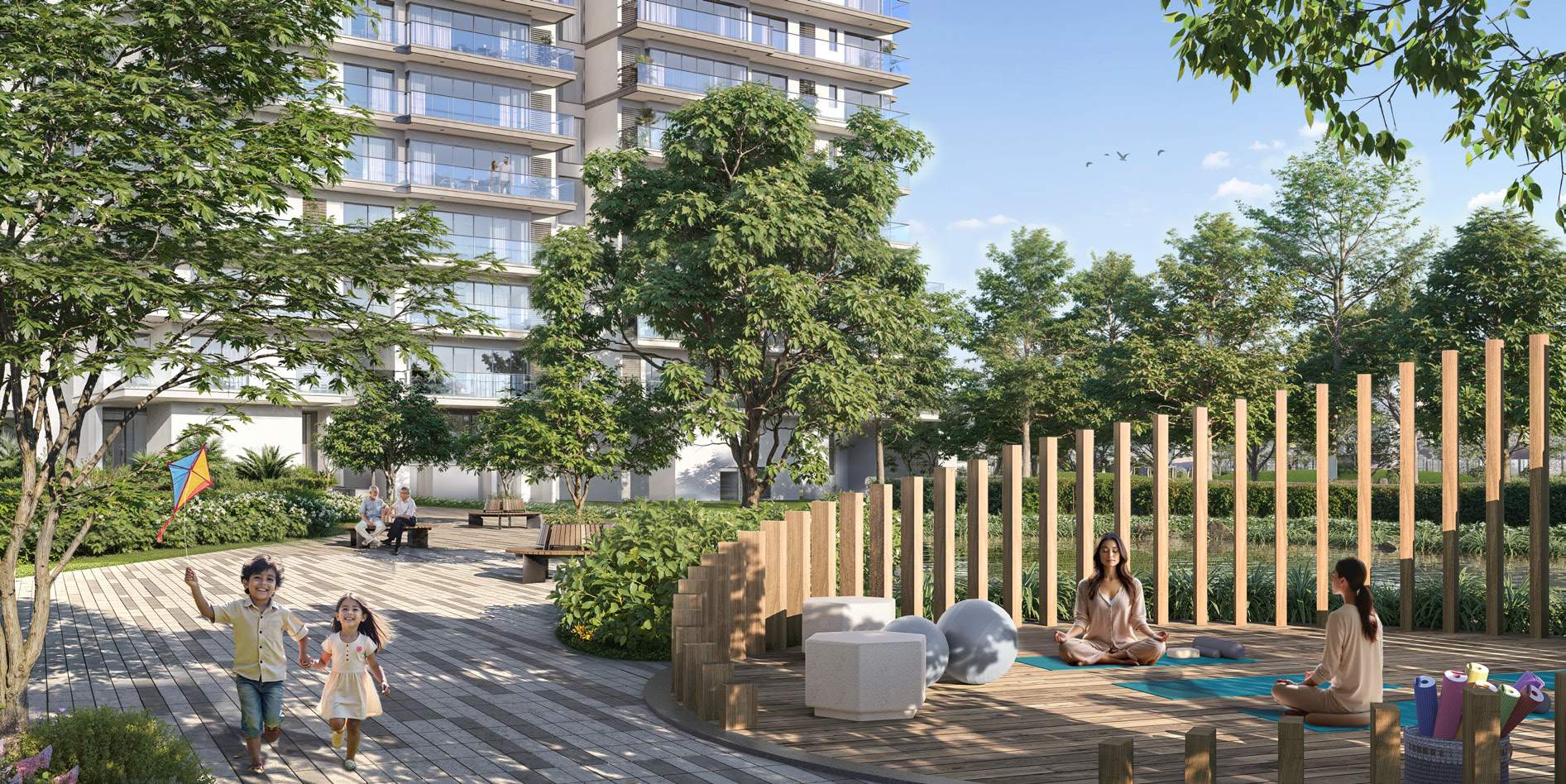Jogging trails, cycling track, yoga lawns & pet park